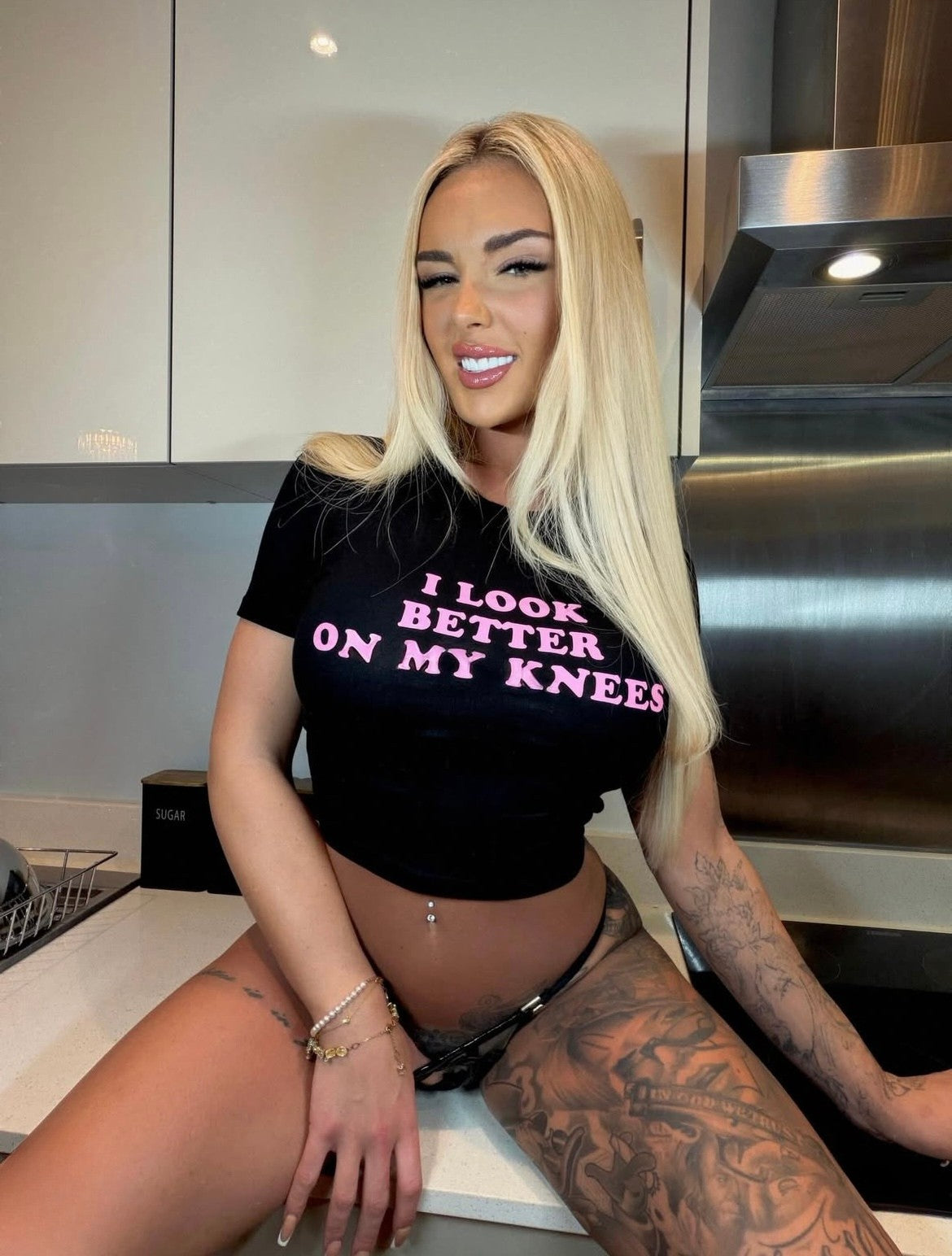 I LOOK BETTER ON MY KNEES CROP TOP