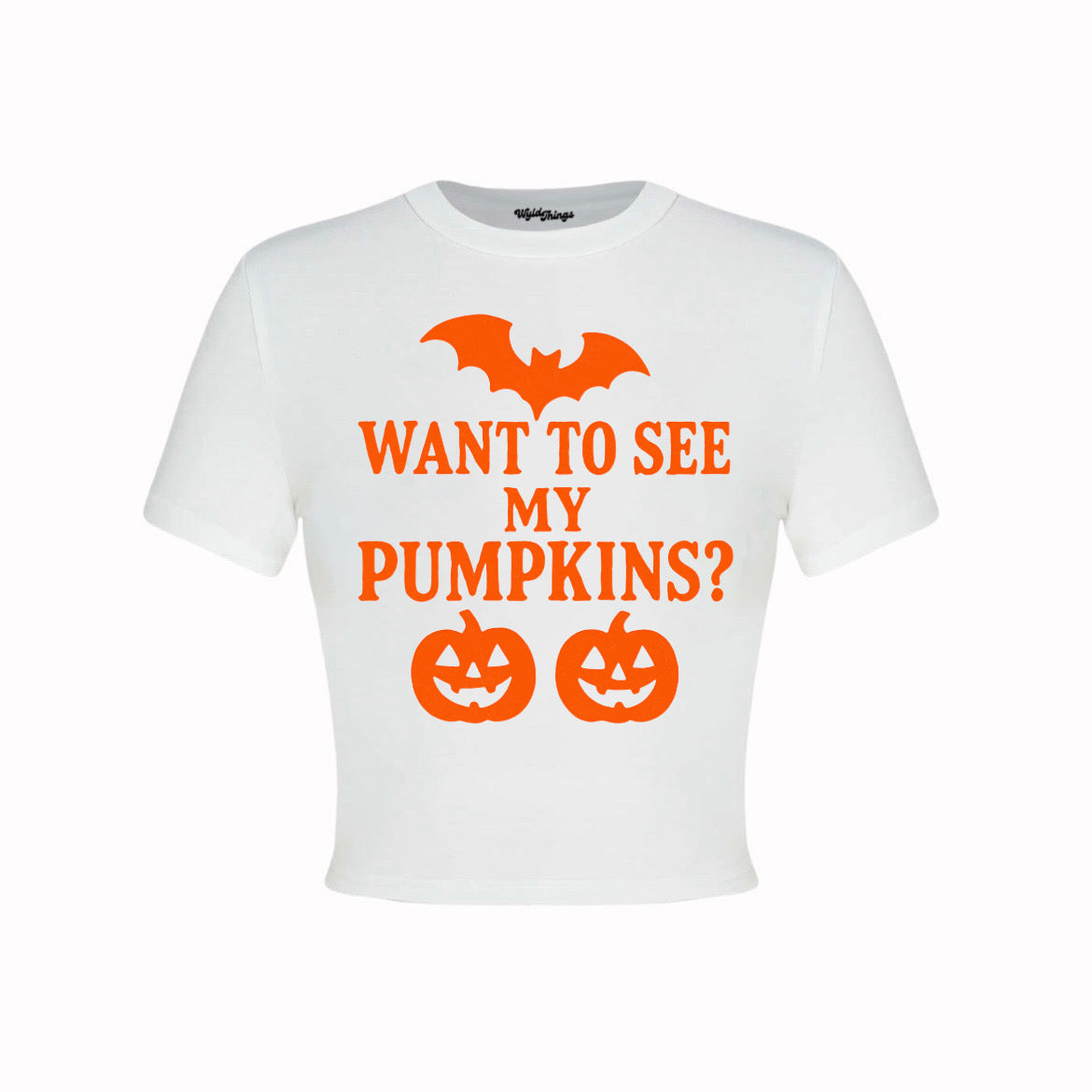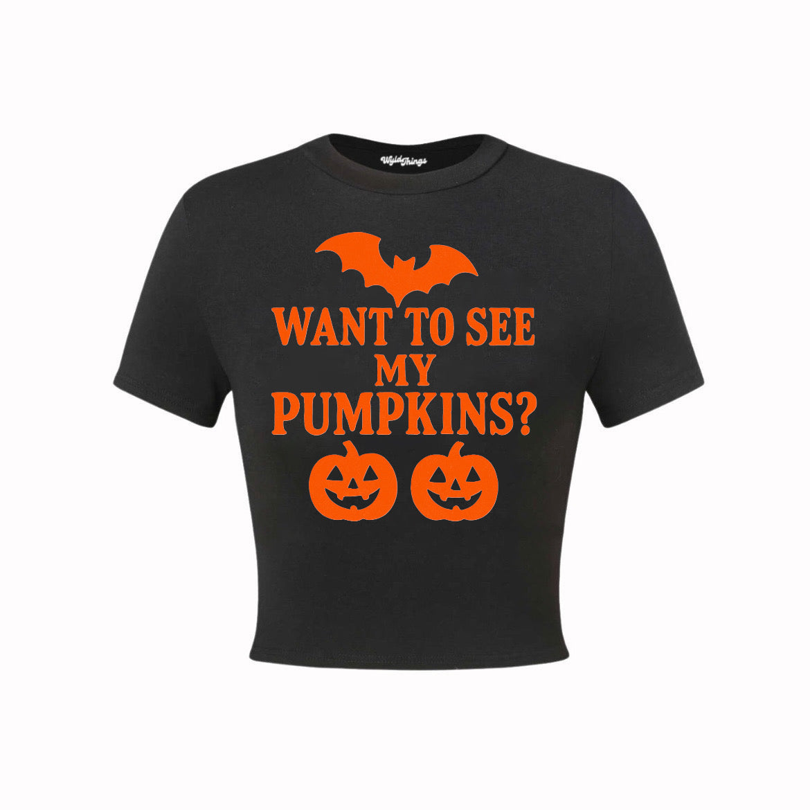 WANT TO SEE MY PUMPKINS HALLOWEEN CROP TOP