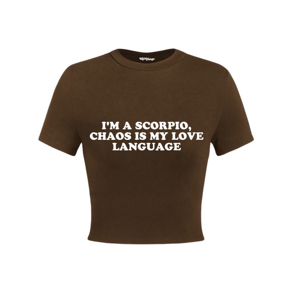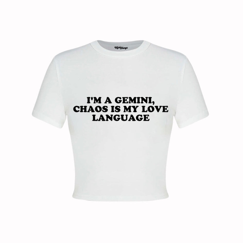 CHAOS IS MY LOVE LANGUAGE CUSTOM ZODIAC Y2K CROP TOP